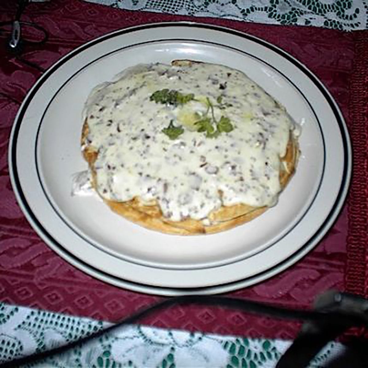 Creamy country-style sausage gravy over warm buttermilk biscuits. It's sauteed beef and onions in a creamy brown gravy, made with condensed cream of mushroom soup and beef broth. See more ideas about cooking recipes, yummy food, recipes.