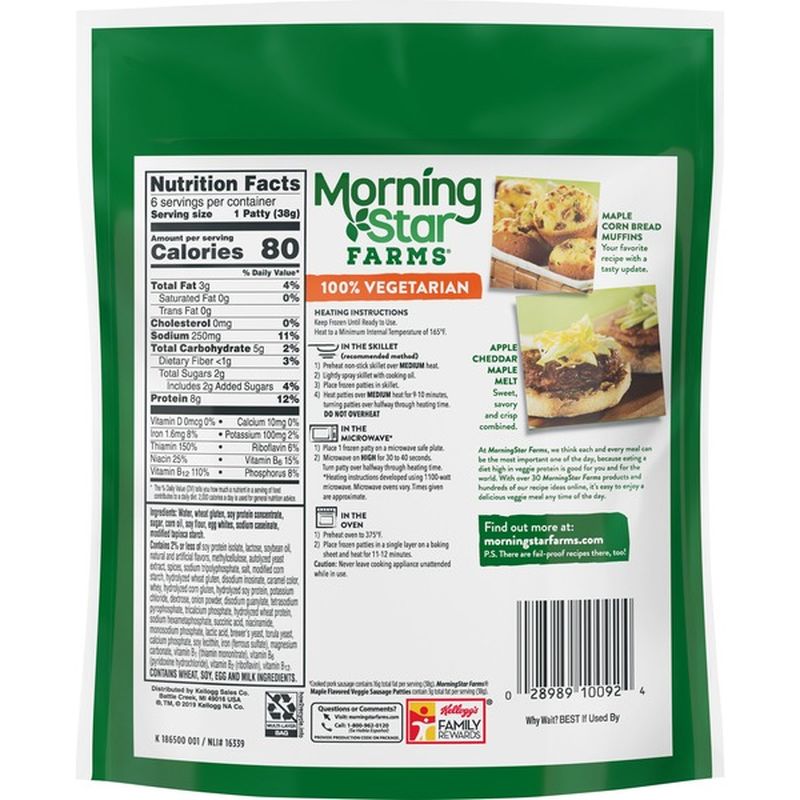 Save On MorningStar Farms Veggie Breakfast Sausage Patties. Getting enough veggies each day can be tough, so here at MorningStar we came up with an easy MorningStar Farms® Chik Patties®, frozen peas, green bell peppers and American cheese give this one-dish meal all the flavors of a salad. I love the Morning Star veggie patties!