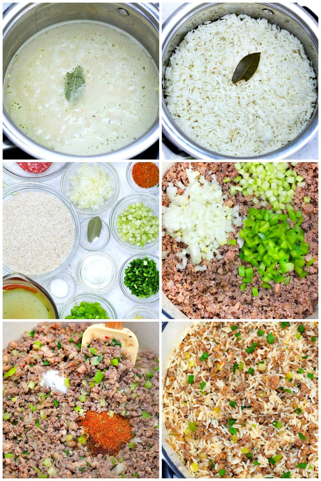 It has bulk sausage, chicken livers, onion, celery, green pepper, garlic, seasonings, rice, and broth in it. The recipe often consists of medium-grain white rice, chicken liver, ground meat such as pork or beef, and various seasonings. This Baked Louisana Dirty Rice and Beans version substitutes juicy chicken thighs.