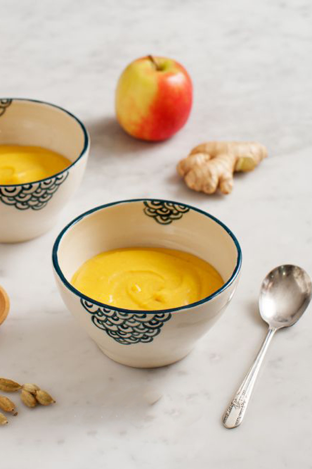 Pumpkin And Apple Soup. Katie Quinn Davies lifts the flavour of traditional pumpkin soup with toasty pumpkin seeds and salty bacon for crunch and texture. This creamy soup is perfect for fall and holiday entertaining.